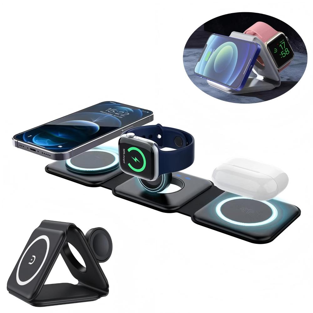 This charger is a game – changer. It can be easily put into pockets or bags, making it a great travel companion. Its wireless magnetic phone charger can deliver up to 15W of power for quick charging, and the magnetic feature holds the phone securely to prevent slips.The chargers for earbuds and Apple Watch fold away when not in use, saving space and keeping the charger neat. The foldable design enhances portability, allowing you to carry it anywhere easily.The charger has a user – friendly and intuitive interface. It’s compatible with various devices, offering a versatile charging solution. Whether at home, in the office, or on the road, it keeps your devices charged.Portability, Functionality, and Compatibility, it is a must – have for device users.