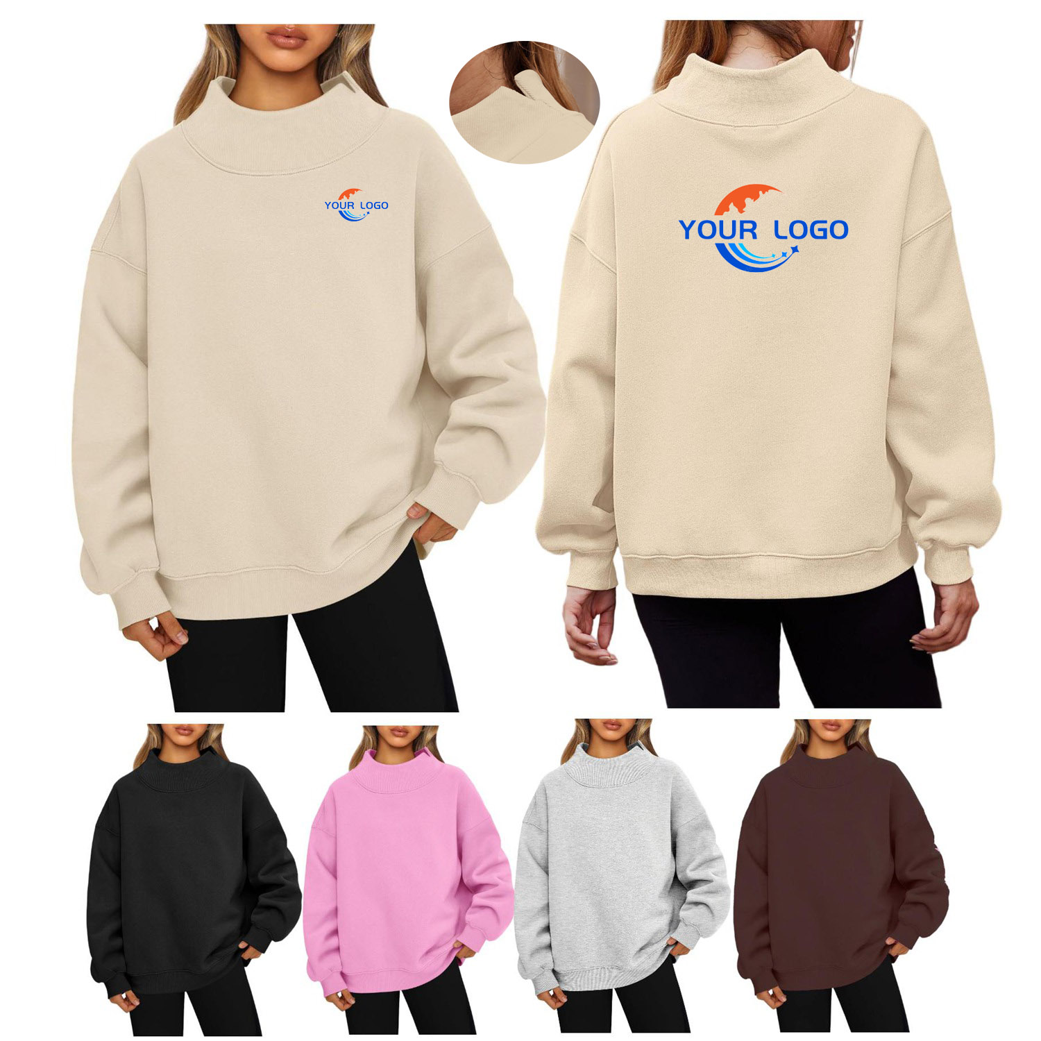 Heavyweight fleece-lined fabric provides essential warmth and a plush internal feel for all-day comfort. Featuring a structured mock neck and dropped shoulders, the architectural silhouette creates a modern, draped aesthetic across various body types. The generous chest and back panels serve as a clean canvas for high-impact corporate branding or personalized graphics. Tailored for casual professional outings or branded leisurewear, the ribbed cuffs and elasticized hem help maintain the garment’s shape through repeated use. Built with a blend of soft-touch fibers, the thick construction makes this an ideal piece for layering in cooler climates.