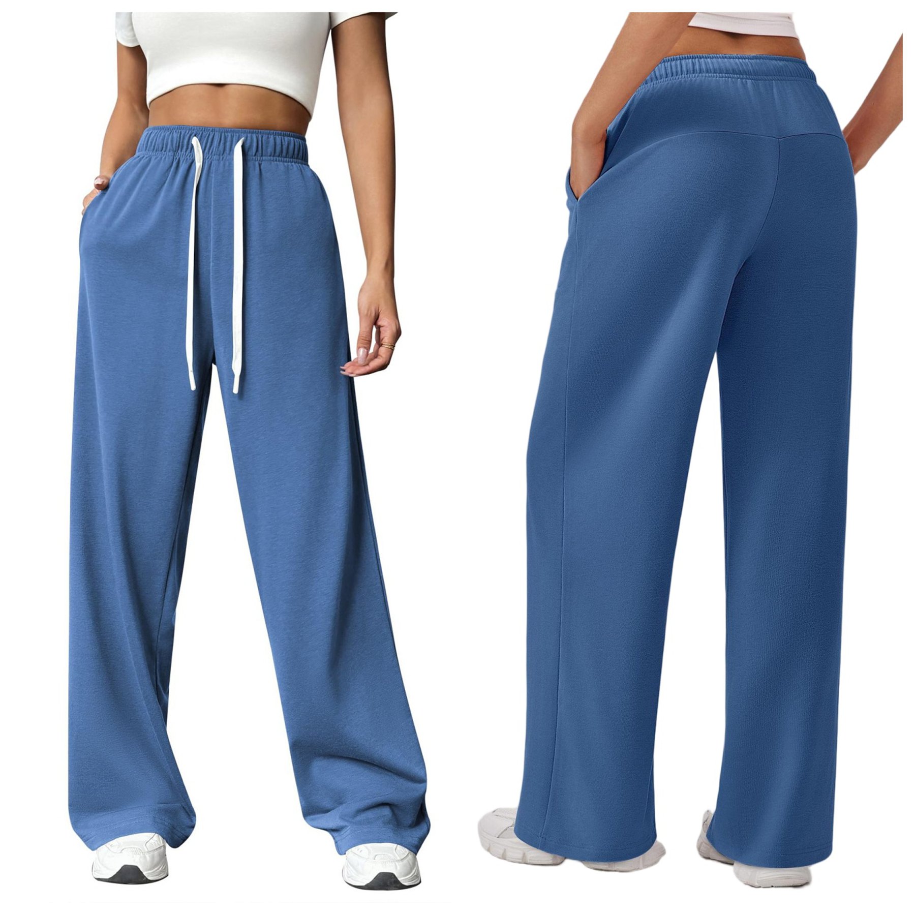ZP 1019 Women’s Relaxed Fit Wide-Leg Fleece Pants with Adjustable Drawstring