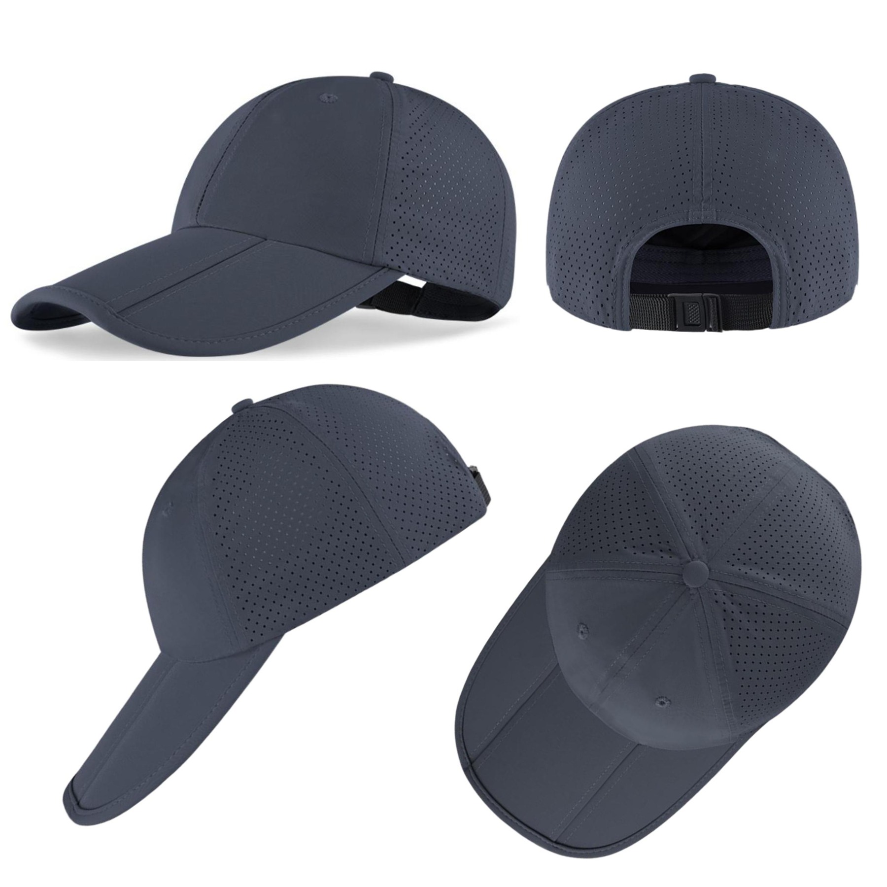 Meet our versatile unisex foldable baseball cap, engineered for ultimate comfort and performance. It features an extended 3.54-inch curved brim that offers superior sun protection for your face and neck. The laser-perforated design ensures excellent airflow, keeping you cool during active and casual wear. Lightweight and easily foldable, it packs neatly into bags or pockets for travel and daily convenience. With an adjustable fit and durable construction, this cap is your ideal companion for sports, outdoor adventures, or everyday style.