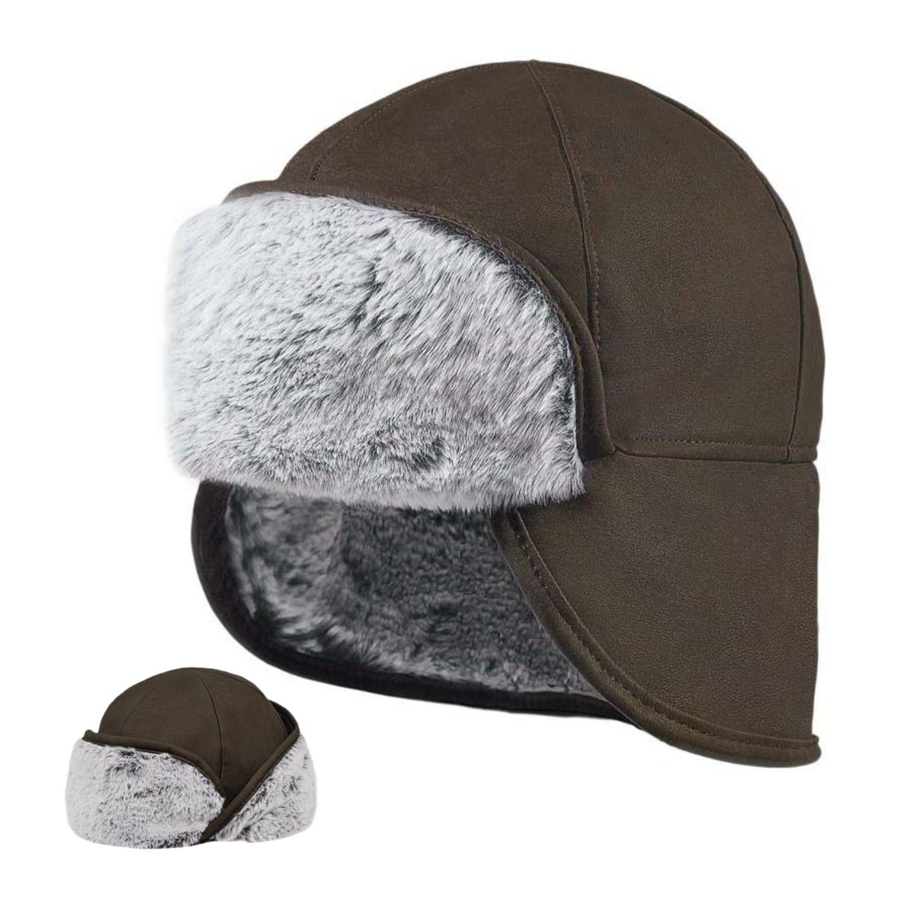 ZP 1027 Unisex Winter Thermal Ear-Flap Hat,45% pu leather+55% polyester